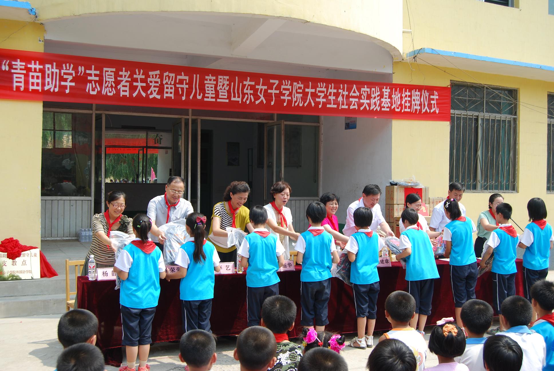 7月3日上午,“青苗助学”关爱留守儿童大学生社会实践活动启动仪式在济阳县仁风镇王圈小学举行。山东女子学院党委副书记宿建沛,校团委、外国语学院负责人以及部分大学生志愿者代表一行来到济阳,受到了当地领导和仁风镇王圈小学师生的热烈欢迎。