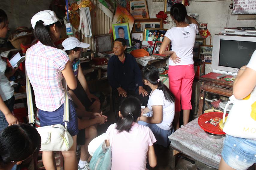 在与蒙阴县团委对接之后,我们开始对农村财务状况进行调查,7月12日我们到达野店镇烟庄村,首先参观了沂蒙六姐妹纪念馆,沂蒙红嫂为革命胜利尽其所能、倾其全力、无怨无悔、视死如归的精神让我们感动。为了更真实的了解历史,深刻感悟“红嫂”精神,我们来到六姐妹之一伊淑英老人的家中进行采访,老人对历史真实的描述以及她浓烈的爱国、爱党情怀,让我们懂得了作为当代的大学生更应该具备强烈的历史使命和社会责任感。随后,我们来到了沂蒙六姐妹红军小学开始为期一周的支教活动。
