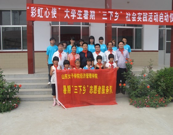 在启动仪式的最后,由仁风镇党委副书记刘晓波为我院志愿者队伍授旗,启动仪式圆满结束。至此,我院2011年“彩虹心使”大学生暑期“三下乡”社会实践活动将全面展开。