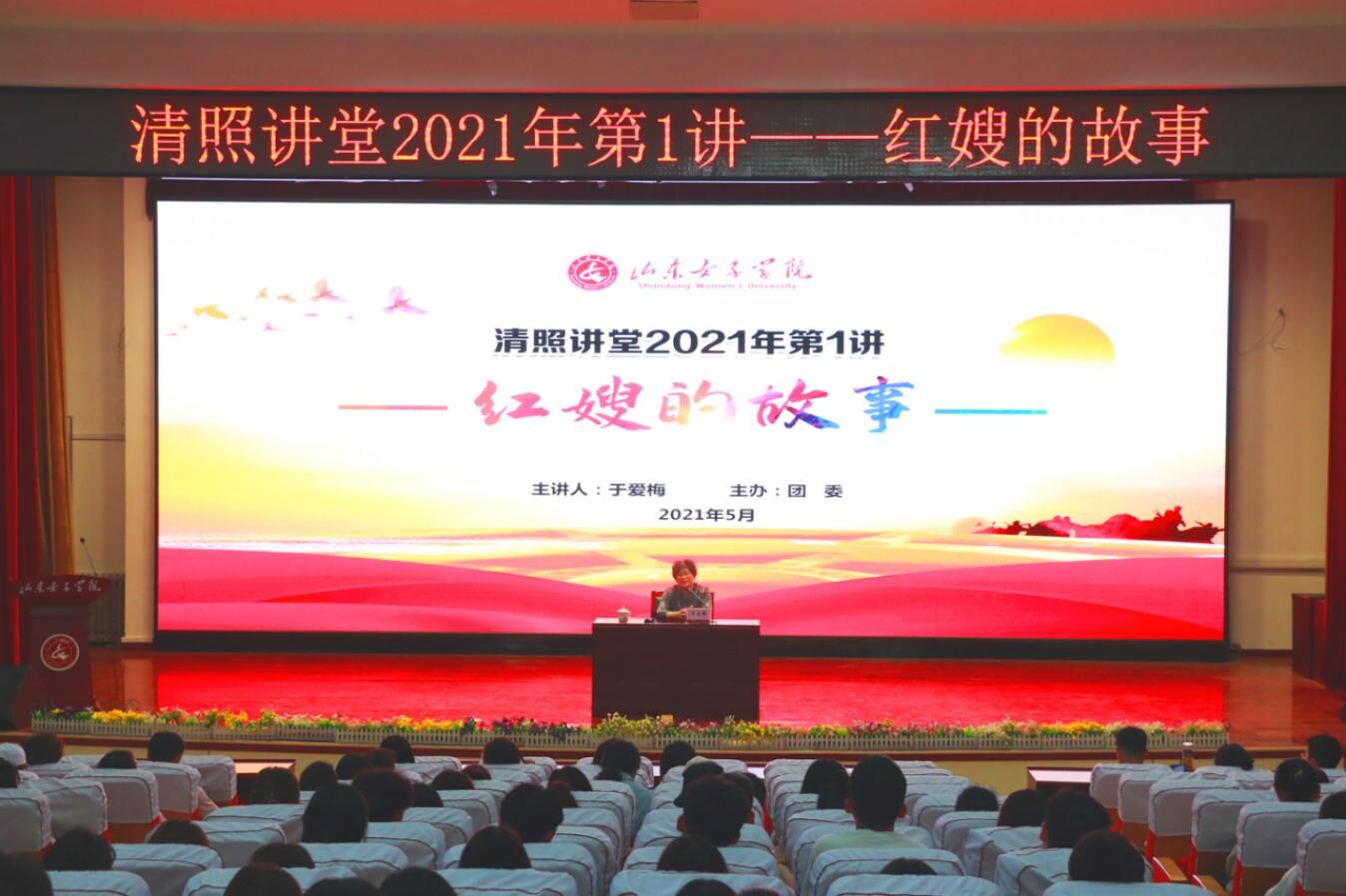 5月12日,山东女子学院清照讲堂特邀“沂蒙母亲”王换于的孙女、沂蒙红嫂张淑贞的女儿、沂蒙精神传承促进会会长于爱梅,为女院青年学子带来一场生动的“沂蒙精神”红色教育专题思政课。近300名师生现场聆听,反响热烈。