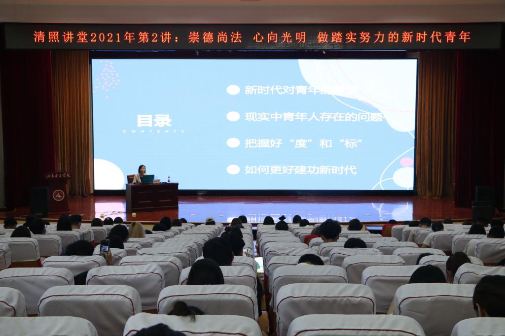 清照讲堂是学校品牌性学术文化交流平台,同时也是学校文化交流的一张靓丽名片。本期清照讲堂从新时代对青年的要求切入,通过案例解析,培养青年学生法治思维,提升综合素养,为未来顺利走向社会打下基础。