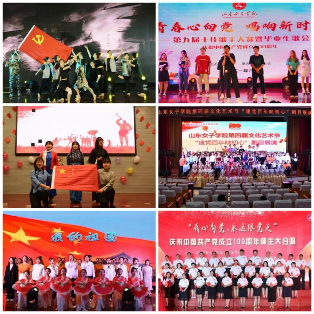 今年是中国共产党成立100周年,为深入学习贯彻习近平总书记在党史学习教育动员大会上的讲话精神,传承红色基因,汲取奋进力量,推进党史学习教育走深走实,山东女子学院创新方式方法,举办“永远跟党走”第四届文化艺术节,利用线上线下平台载体,设计开展“展百年风华、演百年经典、颂百年辉煌、传百年薪火、悟百年初心”5个板块27场活动,展演师生作品1600余件,获学习强国等媒体报道10余次。女院人用艺术的话语体系,赓续红色血脉,把中国共产党的百年历史“写出来”“唱出来”“讲出来”“画出来”“舞出来”,让党史学习教育“活”起来!
