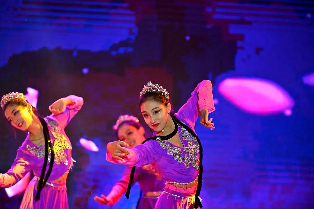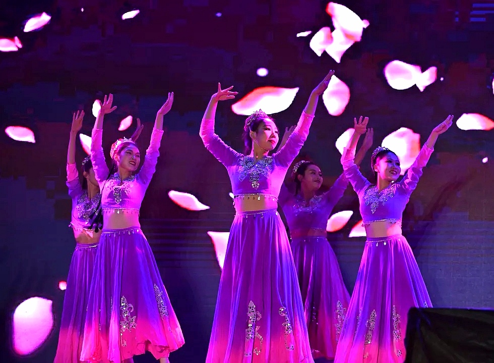 晚会中,由艺术设计学院师生设计的影画表演《明镜映霓裳幻想曲》寓专业教育于节目创作,手工复刻大唐《簪花侍女图》中的人物形象,历时30天制作全部服装、头饰、道具,以轻歌曼舞映衬着盛唐的繁华与灵动,展现了扎实的专业功底,更体现了师生们实践教学的丰硕成果;原创歌曲《致学弟学妹》,叮嘱2021级新生,时间属于奋斗者,要做最好的自己;礼仪队《青春show》和辅导员礼仪操,用得体大方的着装和仪态,表达共建文明校园的美好期待。晚会在大气磅礴的歌伴舞《共筑中国梦》中落下帷幕。