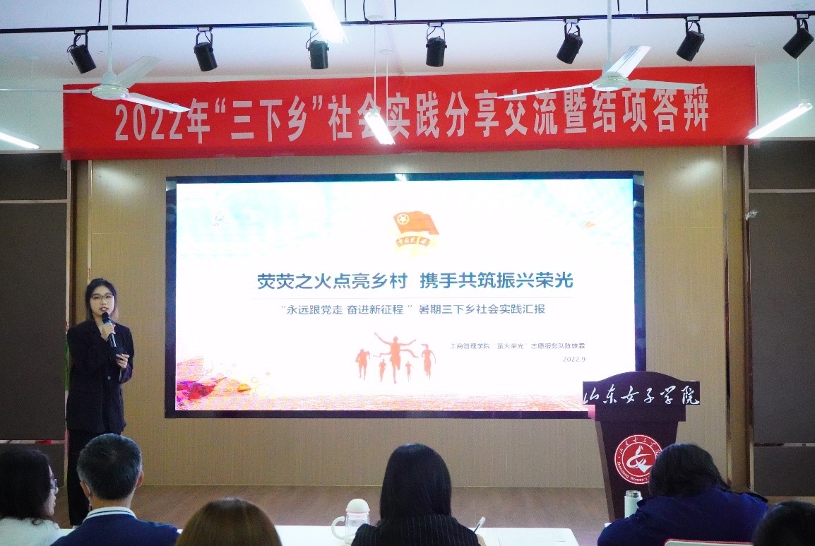 9月22日下午,由学校团委主办、各学院团总支和学生会承办的“喜迎二十大 永远跟党走 奋进新征程”2022年暑期“三下乡”社会实践分享交流暨结项答辩会顺利举办。学校团委相关负责同志,各学院团总支书记担任评委,22支申报重点立项的暑期“三下乡”社会实践团队进行结项答辩,向2022级新生代表们分享实践成果和经验,新生团支部通过线上直播集中收看。