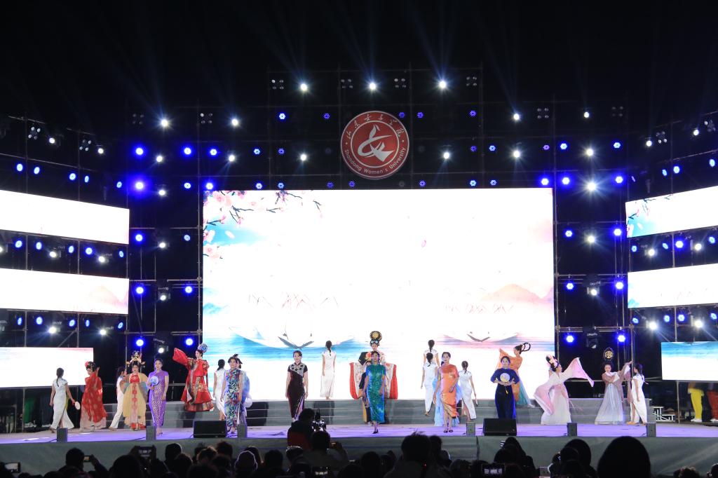 11月12日晚,“七秩芳华 向美而行”——山东女子学院建校七十周年庆祝晚会在长清校区田径场隆重举行。中国妇女研究会副会长,山东女子学院特聘教授叶文振,山东女子学院党委书记郭翠芬,党委副书记、校长李光红,原党委副书记宿建沛,原党委委员、副校长侯素美,长清区大学城管委会高校联络部副部长刘秀军,学校各部门单位主要负责人,各学院基层党委(党总支)副书记,辅导员老师和2022级全体新生欢聚一堂,现场观看。广大师生校友、社会各界朋友23.18万人次通过网络直播云端共襄盛会,同贺建校七十周年。