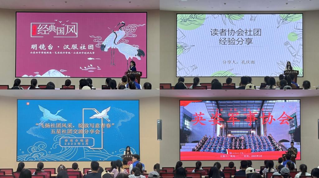 经验分享交流会上,明镜台汉服社、读者协会、英姿军事协会、春雨合唱团、青年志愿者协会5个五星社团负责人分别从社团管理、特色活动、竞赛情况、团支部建设、2023年度计划等方面,通过ppt展示的形式,分享了社团建设经验和特色做法。各社团坚持弘扬中华优秀传统文化,勇于创新,全面激发社团活力,开展行走的美育课堂传统弓道课后延时课、中国女性服饰变迁缩影秀、坤弘读书会经典共读、健身气功八段锦带学带练、强国有我“核”你一起志愿宣讲等内容丰富、形式多样的社团活动,展现了女院青年学生的青春风采。随后,进入交流环节,同学们围绕社团发展中的阻碍与难点问题、参与竞赛赛事选择、社团特色与学科专业结合、日?;疃沟任侍饨薪涣?,相互借鉴优秀的经验做法,积极讨论社团的发展与未来。