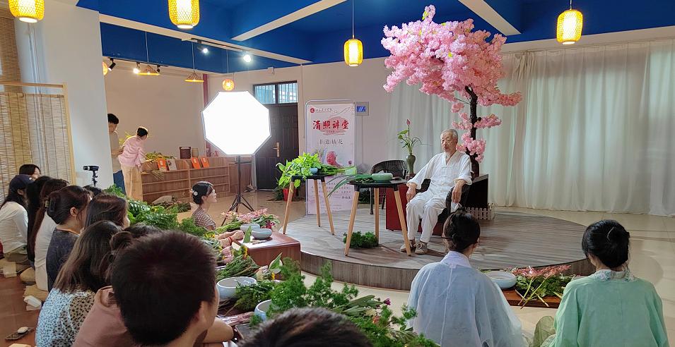 6月26日下午,学校第28期“清照讲堂”在求真楼举行。中国插花非遗传承人、国家二级花艺师乔伯良先生担任主讲嘉宾,与师生代表互动,现场传授中式非遗插花技巧,并受邀担任明镜台汉服社传统文化艺术导师。