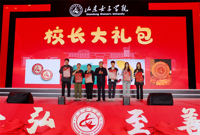 晚会现场,学校党委书记吕晓黎为在“万名学子 共读《百姓家》”活动中表现突出的师生代表颁奖,表彰他们在共读一本书、文化“两创”、实践“三进”、成果“三讲”等活动中取得的优异成绩。党委副书记龙希利为同学代表颁发“大礼包”,希望新生们用女院人的新身份,潜心学在女院,保持健康心态,女院永远是同学们的家。