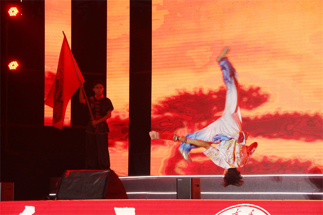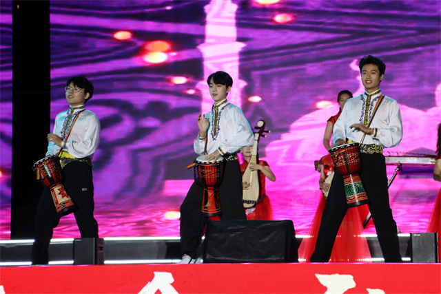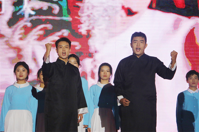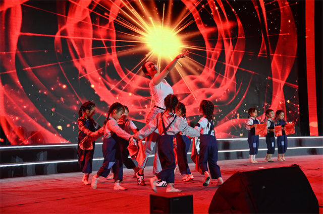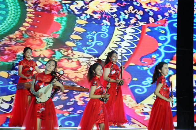 晚会中,大学生艺术团演绎的器乐合奏《青春舞曲》向我们诉说着当下青春的美好和绚丽;明镜台汉服社的音乐诗画《明镜映霓裳》让我们穿越时空,感受历史的气息;学校附属幼儿园的小朋友们带来了舞蹈《一朵红的花》,用红色歌舞的表现形式,传递了中华优秀传统文化代代相传的信念,晚会走向高潮。