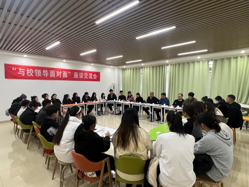 11月23日下午,学校组织召开2023年秋季学期第1期“与校领导面对面”座谈交流会。党委副书记龙希利与来自12个学院的学生代表交流座谈,学生工作处、教务处、团委、保卫处、后勤管理处相关负责同志参会。