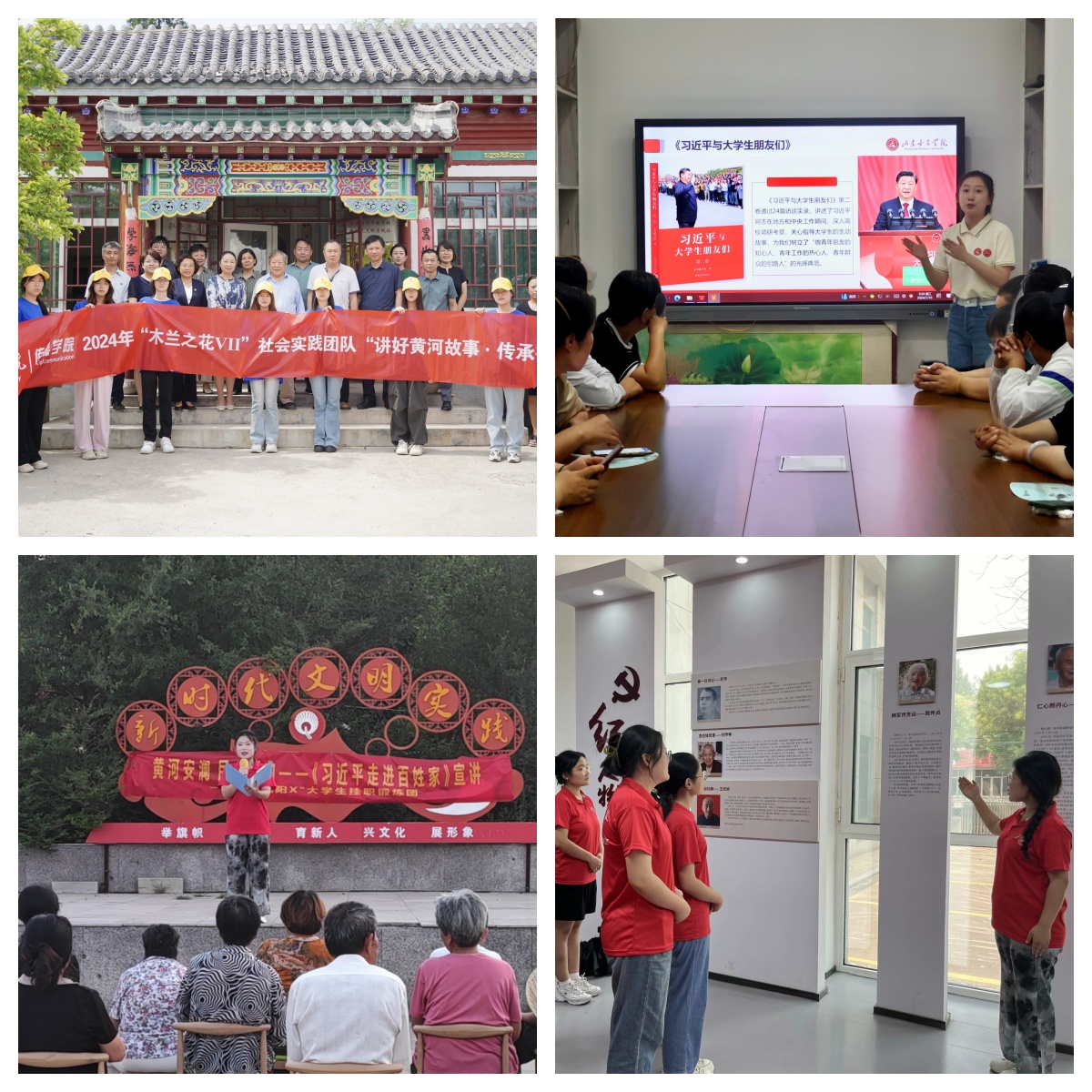 今年夏天,一场场“双向奔赴”的宣讲活动在祖国大地展开,女院青年学子充分发挥自身专业优势,开展系列宣讲活动。外国语学院“美阳阳X”大学生挂职锻炼实践团成员们来到了济南市济阳区垛石街道红色文化长廊,在红色故事的讲述中,志愿者们成为了连接过去与未来的桥梁,让那段不朽的历史得以传承和发扬。工商管理学院微光闪耀志愿宣讲团入选2024年全国大学生西柏坡精神志愿宣讲团,面向学校师生、周边社区居民开展宣讲,让以“谦虚谨慎、艰苦奋斗、实事求是、一心为民”为核心的西柏坡精神绽放新的时代光芒。旅游学院“旅农向阳”社会实践团队前往济南市长清区济西湿地公园,开展植物科普创意游戏的设计工作,以寓教于乐的方式向游客传播湿地生态知识,用青春力量推动湿地文旅新发展。创新创业学院“青春向党,‘乡’伴同行”志愿服务队在济宁市微山县南阳古镇开展系列文旅宣传活动,协助当地政府梳理济宁市微山县南阳古镇大运河历史脉络,整理古镇漕运史、南阳闸(省级文保)闸官厅史籍,助力新建村和美乡村建设。传媒学院“木兰之花Ⅶ”社会实践团队在长清区平安街道中楼子村立足专业优势,用影像讲述黄河故事,描绘多彩齐鲁,展示山东黄河沿岸乡村的文化传承,用青春、奉献和担当讲好“黄河故事”山东篇。马克思主义学院“行走的思政课”社会实践团队赴内蒙古自治区土默特右旗美岱桥村,围绕“新时代的家乡家庭巨变、新时代好家风、妇女在家庭家教家风中的作用”等内容展开调研,以实际行动践行“用脚步丈量祖国大地,用耳朵倾听人民呼声”的誓言。