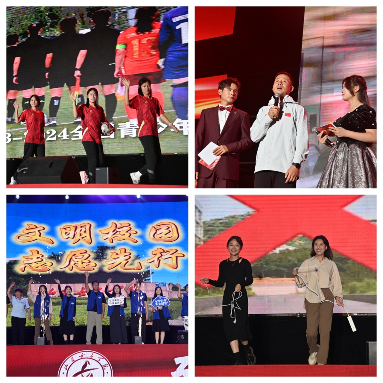 9月26日晚,学校“强国复兴有我 青春挺膺担当”庆祝中华人民共和国成立75周年暨2024迎新晚会在田径场举行。全体在校校领导出席晚会,学校各部门单位的领导老师、2024级新生们在现场观看演出。